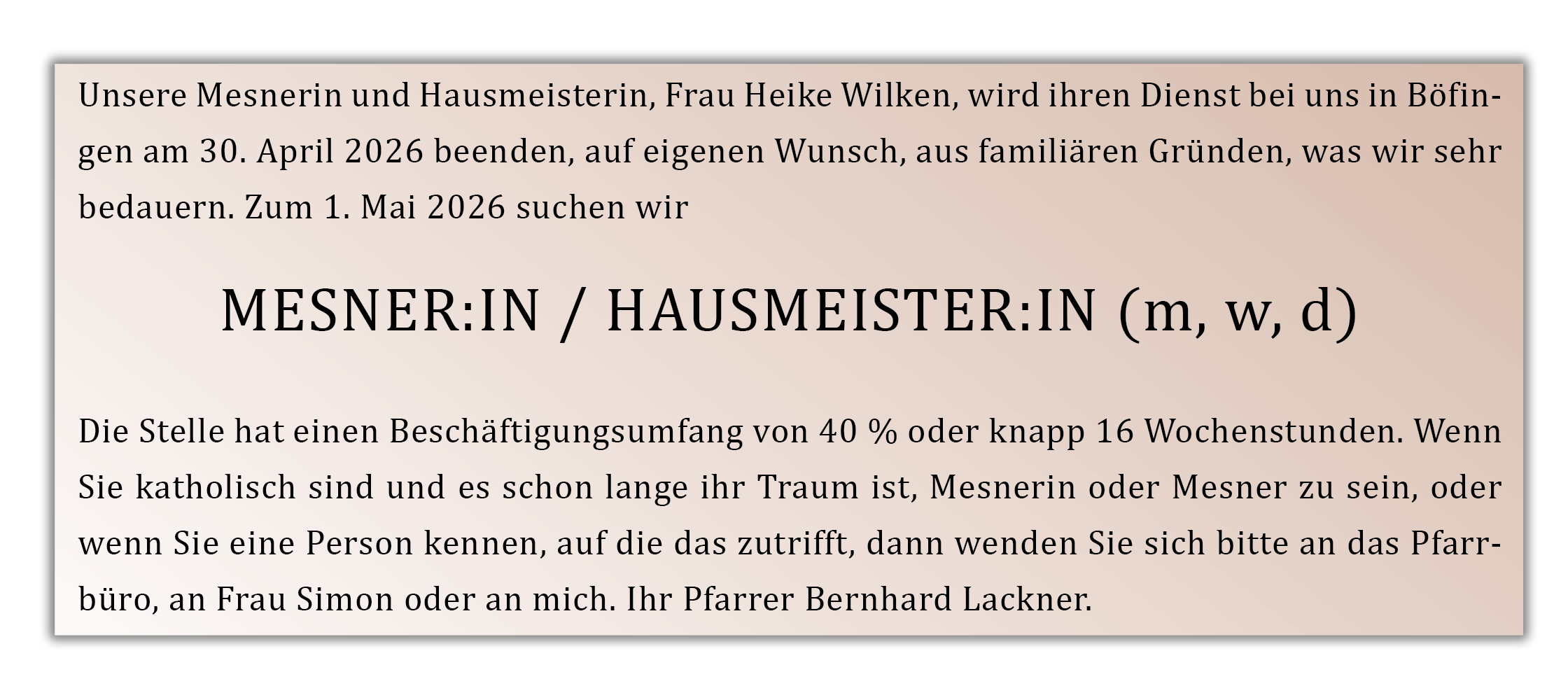 Mesner:in gesucht!